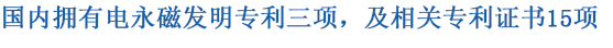 千豪磁電在電磁研究領(lǐng)域保持創(chuàng)新精神,三項(xiàng)發(fā)明專利(蜂巢磁力模板,永磁吸吊器,電磁感應(yīng)加熱裝置),電永磁相關(guān)專利證書多達(dá)15項(xiàng)。